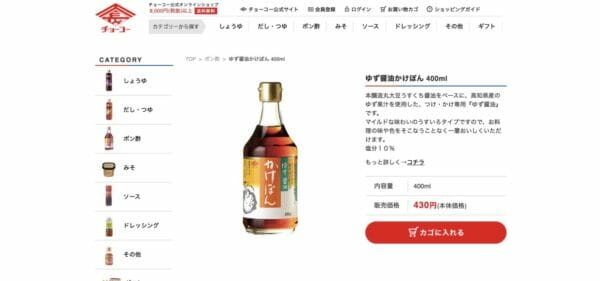 そんな中でのおすすめがチョーコーの「ゆず醤油かけぽん」です。