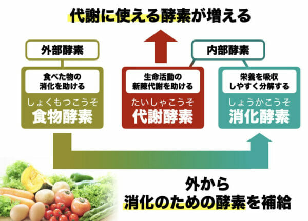 このとき酵素がたくさん使われてしまうと、さきほど言っていた代謝をするための酵素が減ってしまうんです。