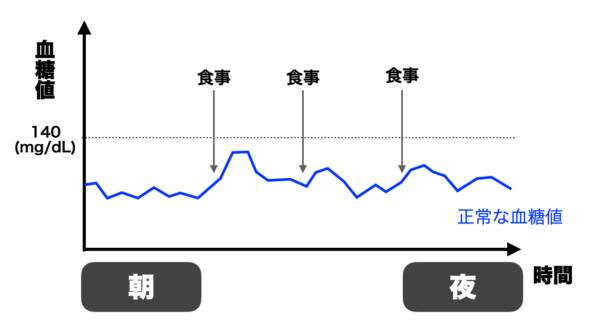 だから、正常な人の日中血糖値の移り変わりはこんな感じです。