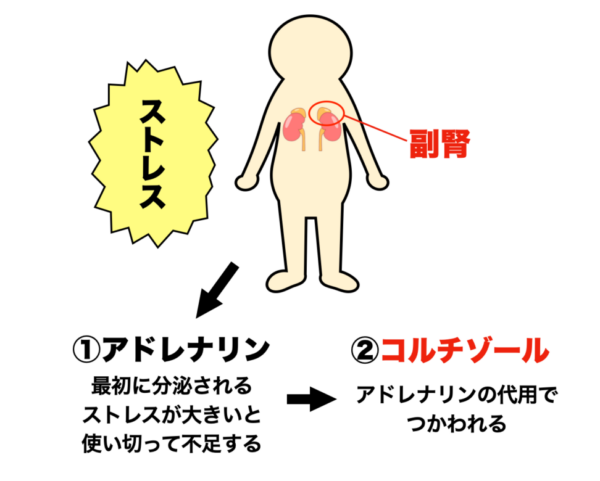 アドレナリンの代わりにコルチゾールが分泌されます。
