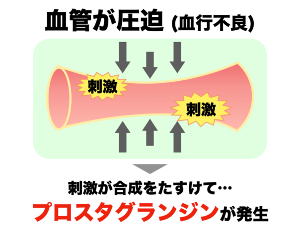 血管が圧迫されるという刺激をうけることで、プロスタグランジンがつくられます。