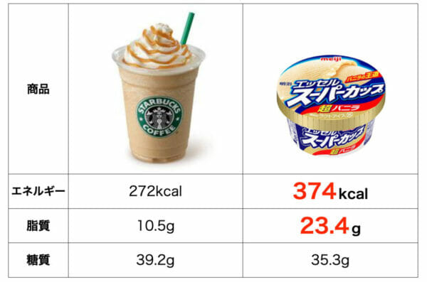 ダイエット中に食べたくないもの代表、スタバの「キャラメルフラペチーノ」と比較してみました!笑