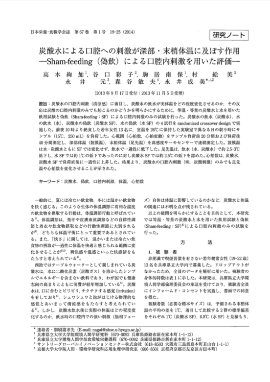 ■「炭酸水による口腔への刺激が深部・末梢体温に及ぼす作用」